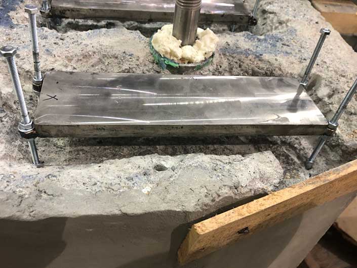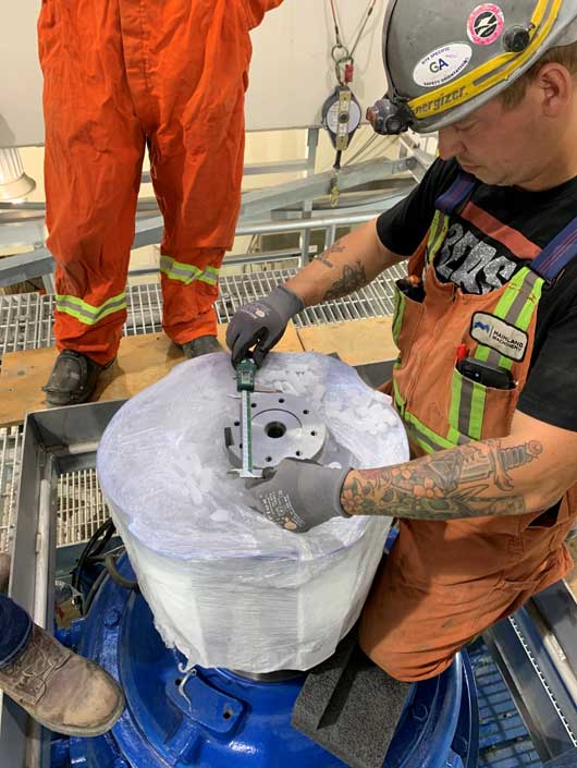 FixturLaser,我们能够确保泵壳水平通过检查持平衬垫灌浆前/垫片。平的班机都水平在公差内。,我们加工一个酒吧去的顶部法兰泵(带点可以坐在)水平。一旦一切都正确设置,我们焊接的锥形衬垫(锥形垫片)。